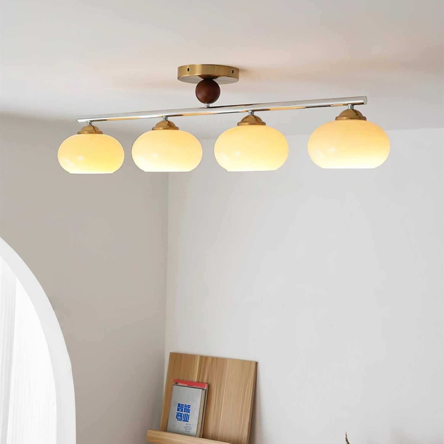 The Artelux Globe Glass Ceiling Light pairs a sleek metal frame in gold or chrome with four rounded glass globes in warm tones of caramel, ivory, and beige. Each globe casts a soft ambient glow, creating a welcoming atmosphere that works beautifully in living rooms, dining spaces, entryways, or hallways. Blending modern elegance with subtle retro charm, this ceiling lamp serves as both functional lighting and a stylish design statement for contemporary interiors.