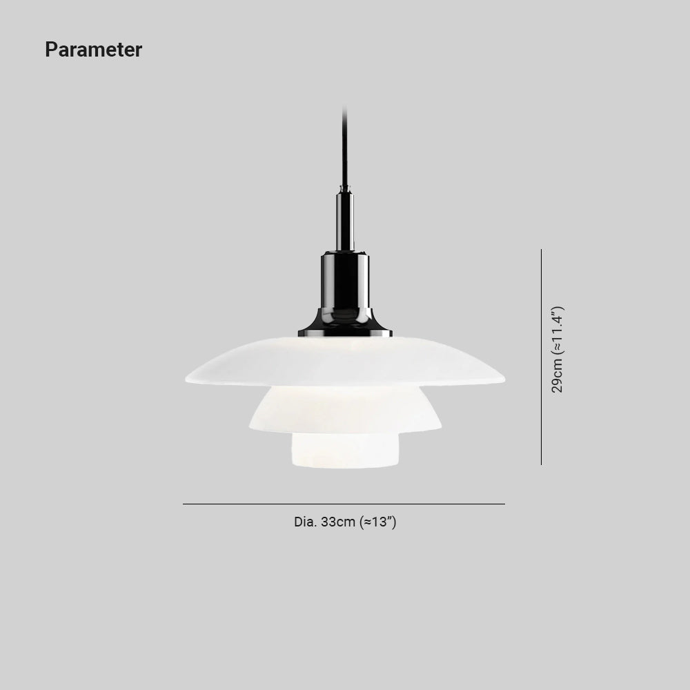 is inspired by the iconic three-shade system, originally developed to master and soften electric light. Its mouth-blown, three-layer opal glass shades — glossy on the outside and sandblasted matte underneath — create a harmonious, glare-free glow. Designed with refined geometry based on a logarithmic spiral, this pendant distributes light evenly, shaping warm and balanced illumination for dining rooms, living spaces, and entryways. A timeless piece where precision meets elegance.